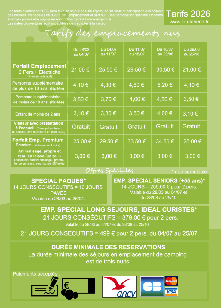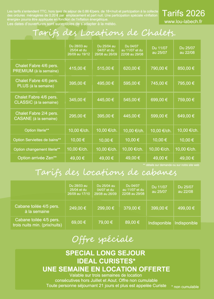 Toute l’année, ne ratez pas nos offres sur internet au www.lou-labech.fr